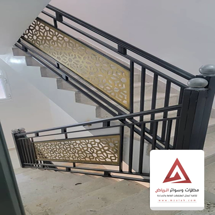 | 3- | متانة هيكلية | يتم قص الدرابزين من صفائح معدنية سميكة غالباً ما تكون مقاس 3 مم فما فوق مما يجعله قوياً وآمناً للغاية مع الحفاظ على خفة المظهر. |